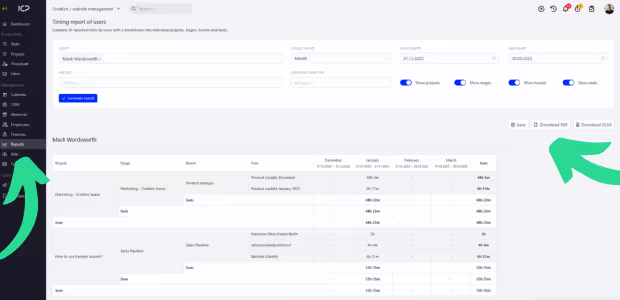 All time reports in IC Project are now downloadable in any format - PDF or XLSX. This allows you to quickly and efficiently pull data from the system in a nice, visual form. In addition, you can save each report so that it remains in the appropriate tab for later. This, in turn, will allow you to rely on templates and defined reports. ?