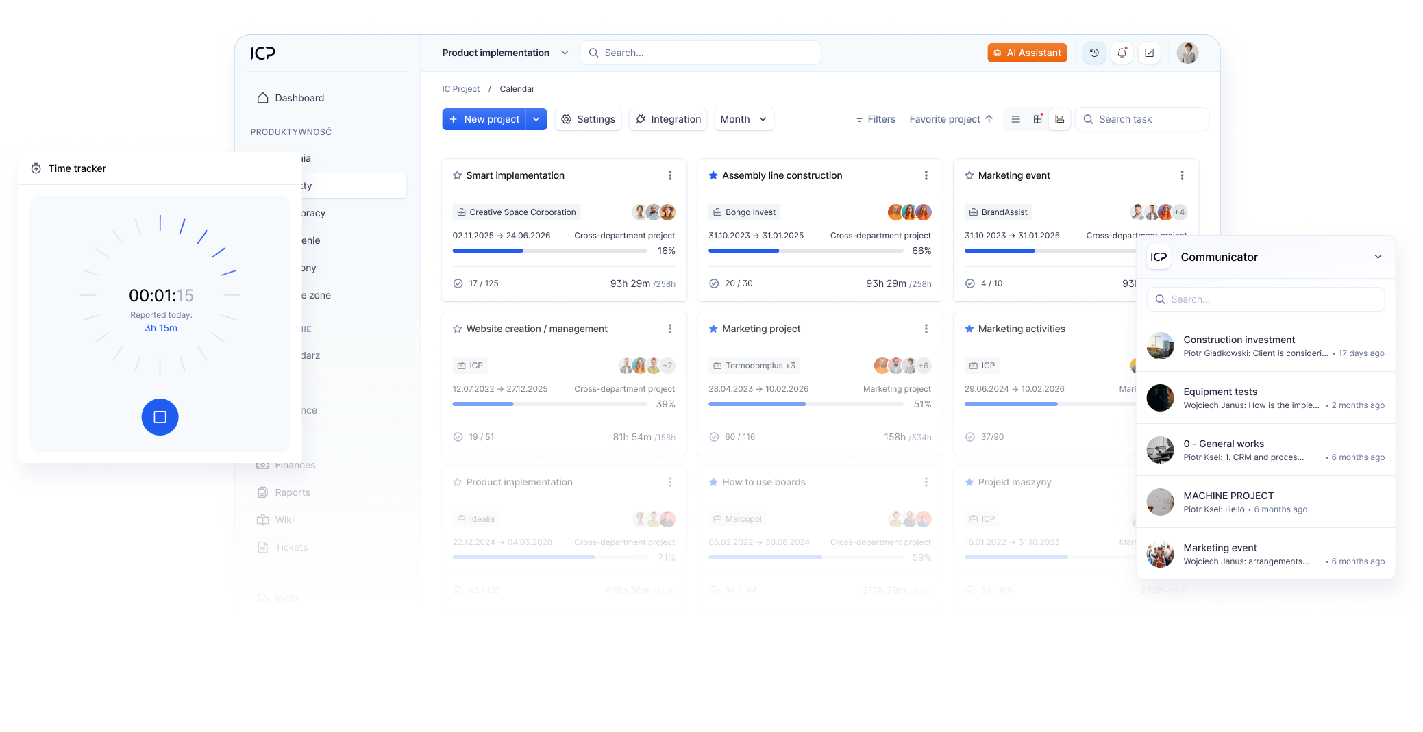 Gantt for upward communication, because management wants to see milestones and dates, and Kanban or iterations for actually managing team work. Usually this approach requires implementing two tools, but not here—in ICP you have everything in one place.