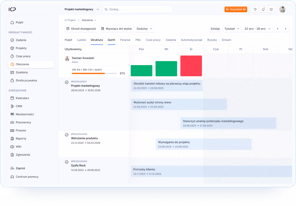 Already today, AI Assistant creates projects and reports, and soon it will help you delegate tasks, plan priorities and react to changes in real time. This is just the beginning — IC Project brings AI where it saves you time and increases efficiency.