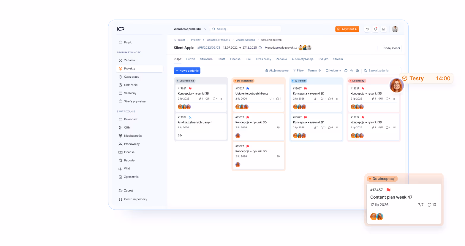 IC Project automatically calculates the costs and revenues generated in projects for a given client. Thanks to the integration with the financial module, you know how much income and costs fall on a particular counterparty and what the profitability of cooperation looks like.